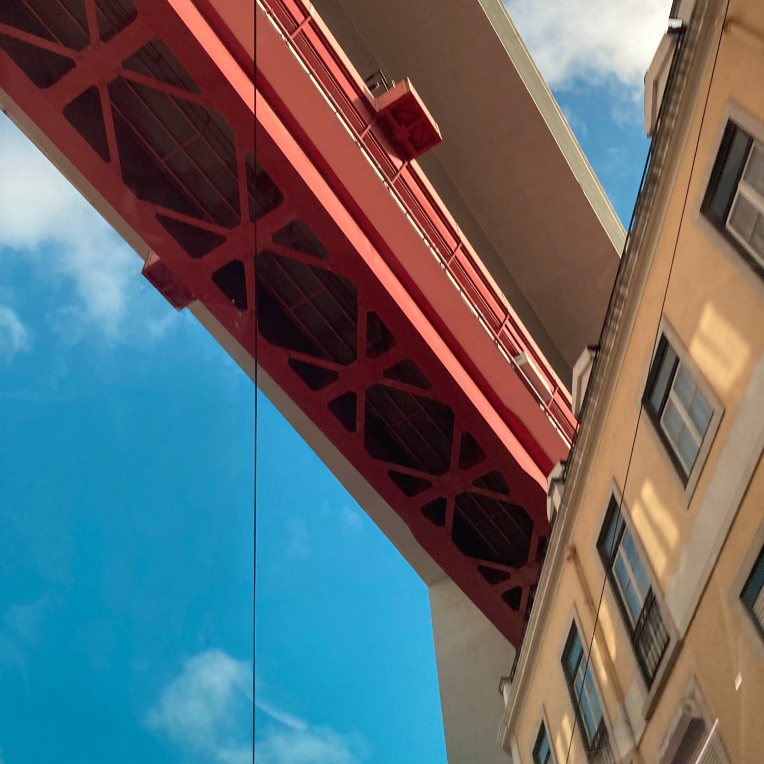 Underneath the 25 Abril Bridge in Lisbon